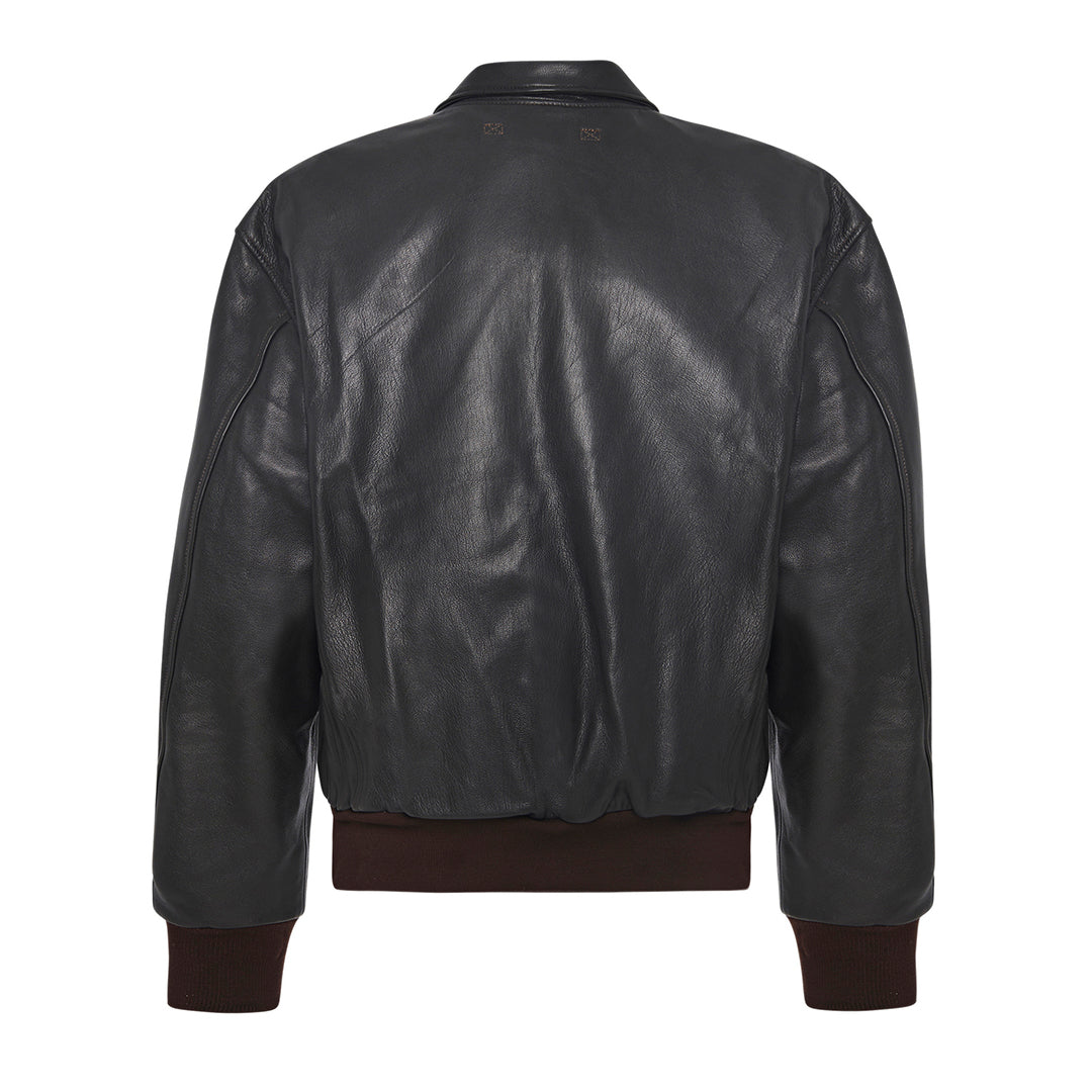 The A-2 jacket is one of the most recognizable military leather jackets in American history. Originally worn by aviators, its structured waist-length cut, ribbed trim, and flap pockets became a timeless design standard.